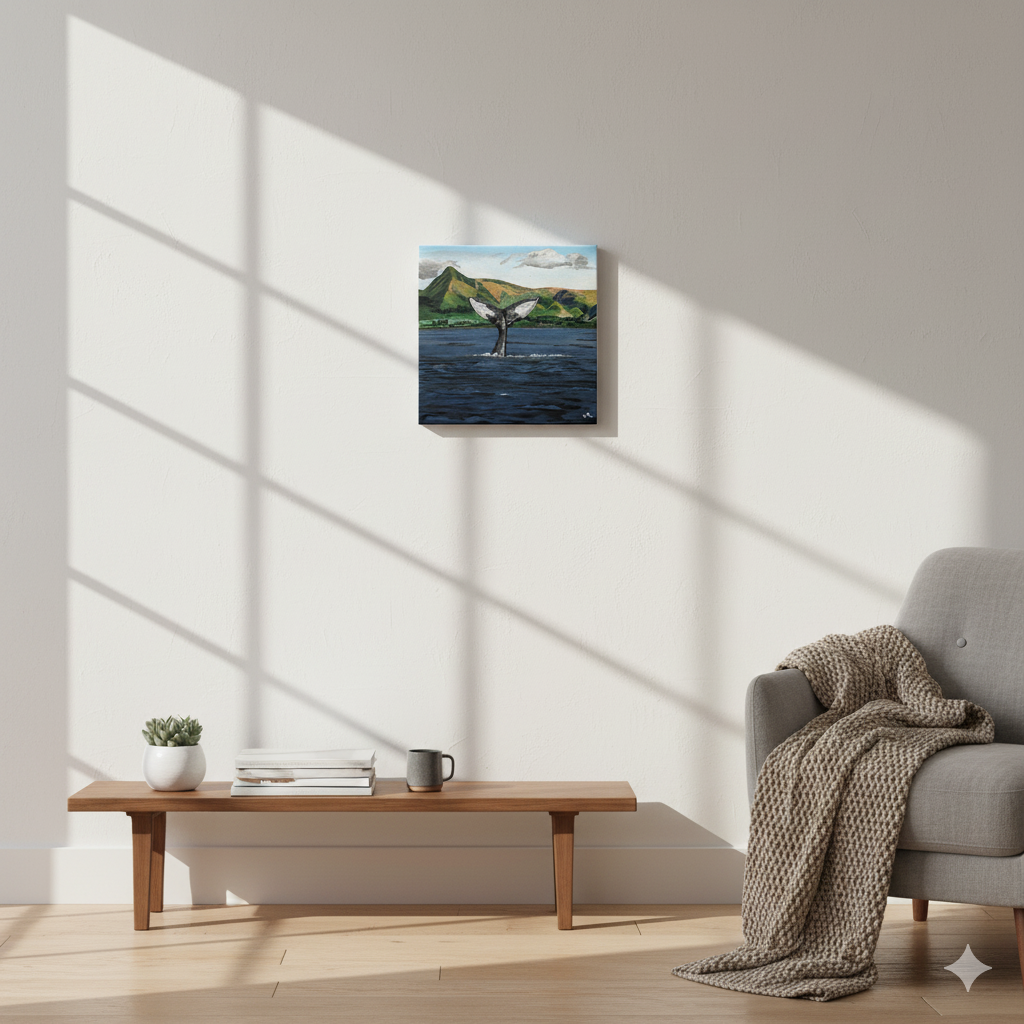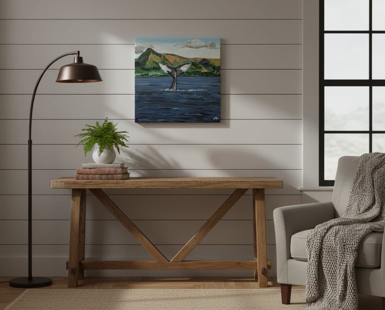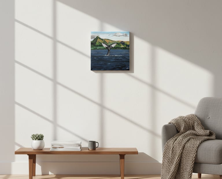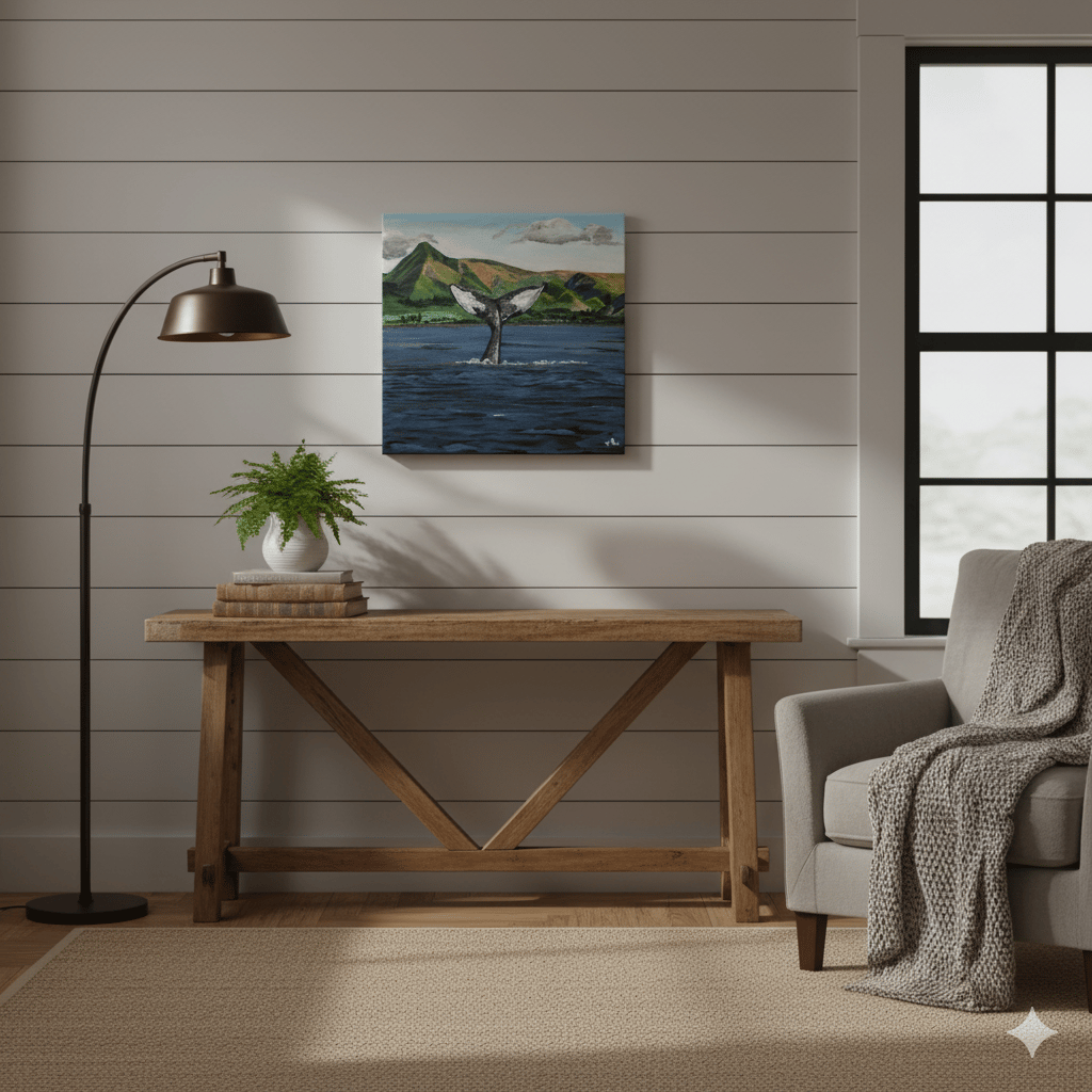 This painting of the ocean feels right at home in a bright, bohemian-inspired space. Surrounded by plants and natural textures, the artwork creates a sense of peaceful connection to nature, inviting you to reflect on the serene beauty of the sea.